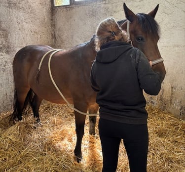 Si vous souhaitez m'aider à progresser dans ma formation et offrir un moment de détente à votre cheval, je vous invite à me contacter.