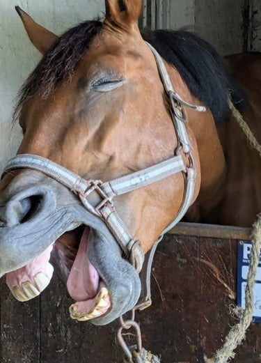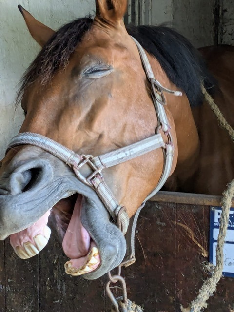 Les signes de relâchement, comme un bâillement, un ébrouement, un soupir... témoignent d'une zone de tension traitée par le cheval.
