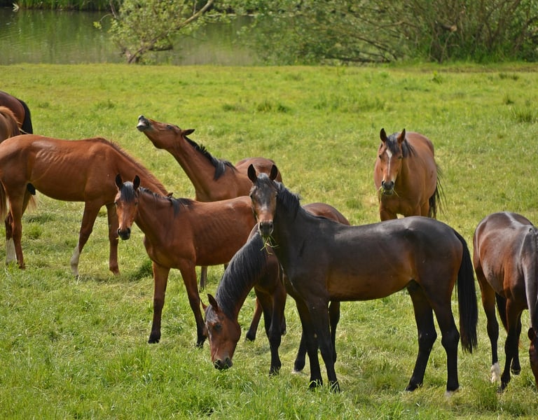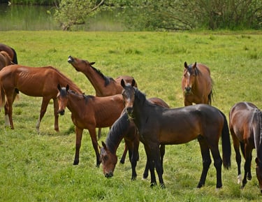 Anxiété de séparation : Le cheval au tempérament grégaire, qui stresse -voire panique- lors de la séparation de ses congénères ou qui fait de l'arpentage au pré